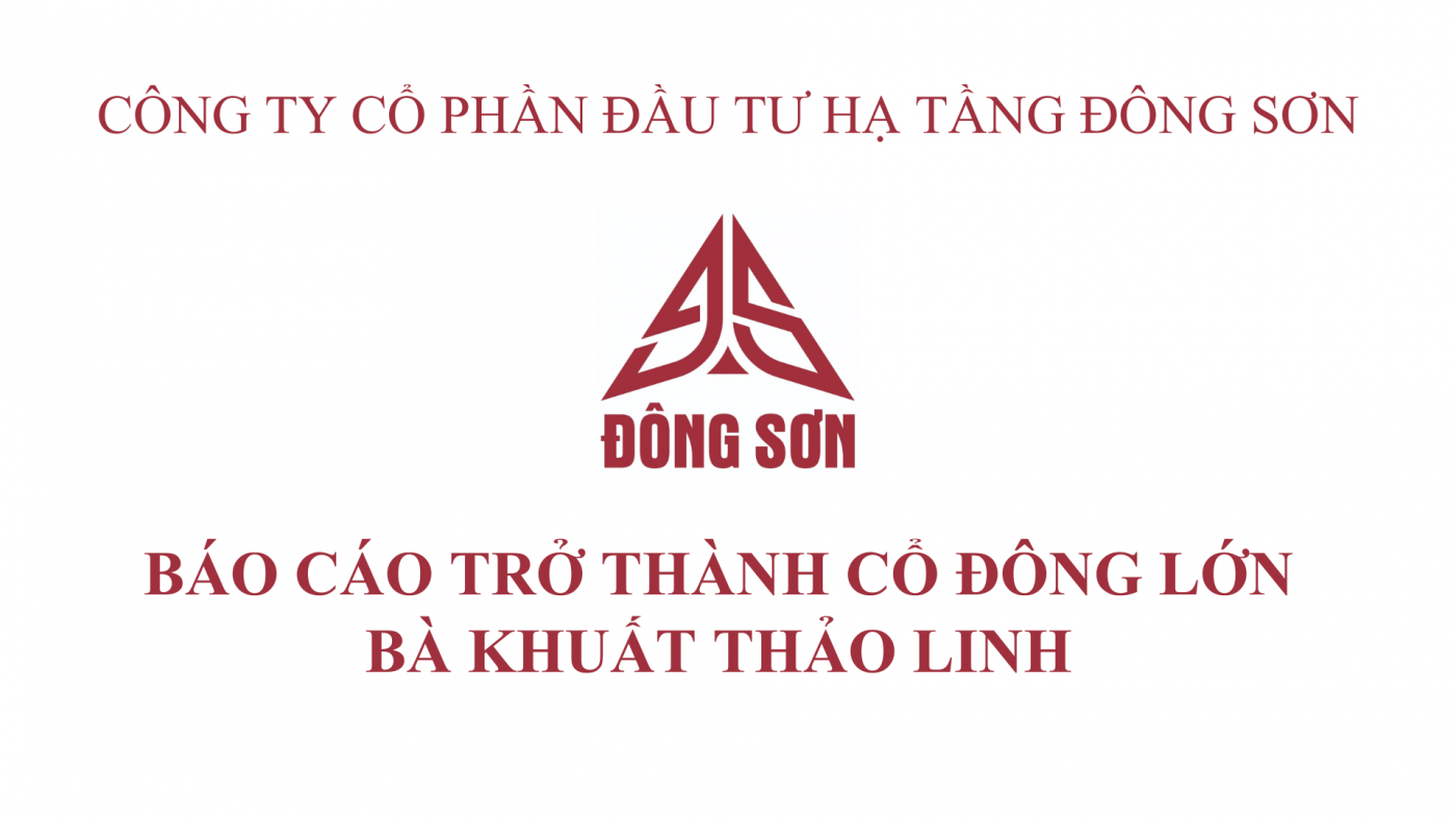 Công ty Cổ phần Đầu tư Hạ tầng Đông Sơn nhận được báo cáo về việc trở thành cổ đông lớn của bà Khuất Thảo Linh đối với cổ phiếu DSH.