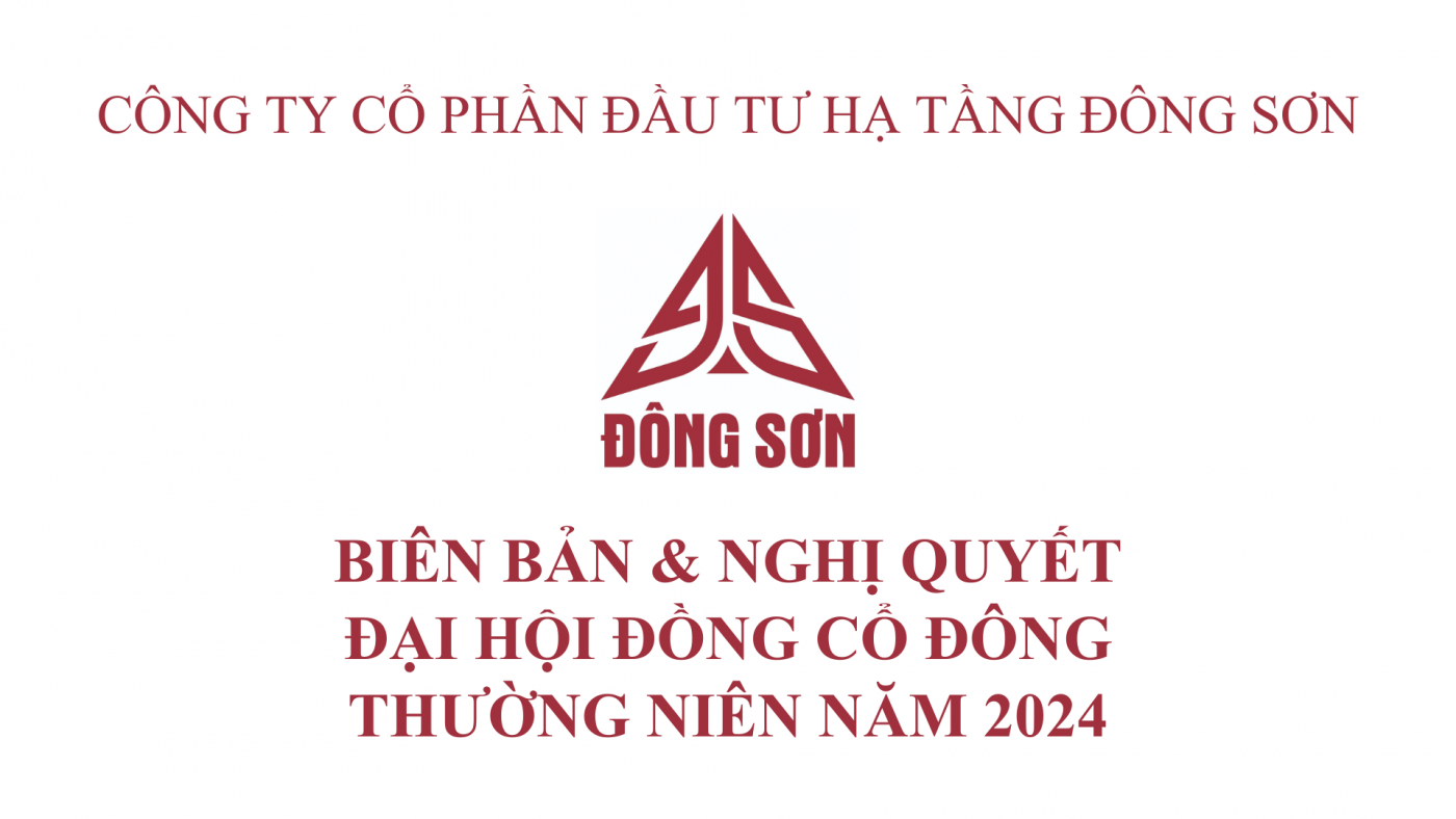Công ty Cổ phần Đầu tư Hạ tầng Đông Sơn trân trọng công bố Biên bản họp và Nghị quyết Đại hội đồng cổ đông thường niên năm 2024 được thông qua hợp lệ theo quy định của Luật Doanh nghiệp và Điều lệ Công ty.