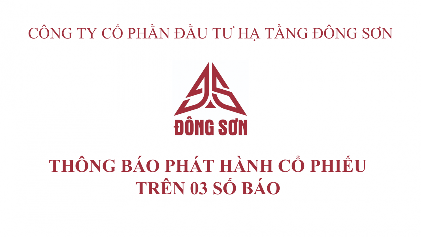 Thực hiện theo quy định tại Khoản 5 Điều 41 Nghị định số 155/2020/NĐ-CP của Chính phủ hướng dẫn thi hành một số điều của Luật Chứng khoán, Công ty Cổ phần Đầu tư Hạ tầng Đông Sơn đã hoàn tất việc công bố Bản thông báo phát hành cổ phiếu ra công chúng trên 01 tờ báo điện tử trong 03 số liên tiếp, cụ thể như sau: