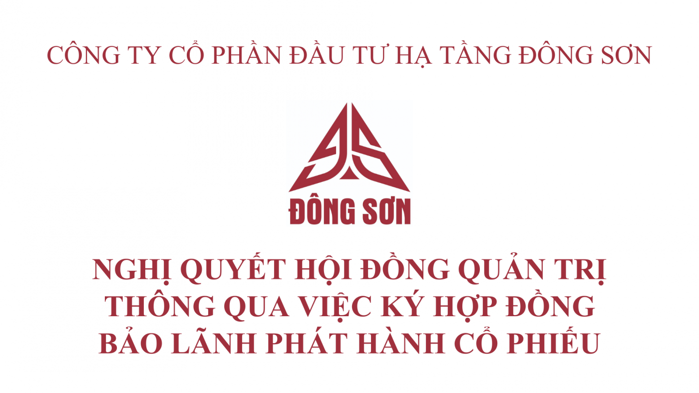 Hội đồng quản trị Công ty Cổ phần Đầu tư Hạ tầng Đông Sơn đã họp và ban hành Nghị quyết thông qua việc ký Hợp đồng bảo lãnh phát hành cổ phiếu nhằm triển khai phương án chào bán cổ phiếu theo nội dung đã được Đại hội đồng cổ đông thông qua và phù hợp với quy định của pháp luật hiện hành.