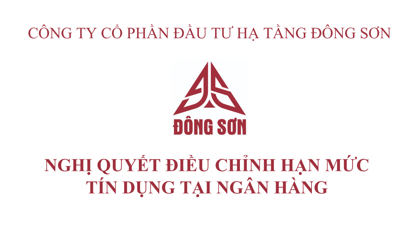 Hội đồng quản trị Công ty Cổ phần Đầu tư Hạ tầng Đông Sơn đã ban hành Nghị quyết về việc điều chỉnh hạn mức tín dụng tại Ngân hàng nhằm đáp ứng nhu cầu vốn phục vụ hoạt động sản xuất kinh doanh và triển khai các dự án của Công ty trong từng giai đoạn.