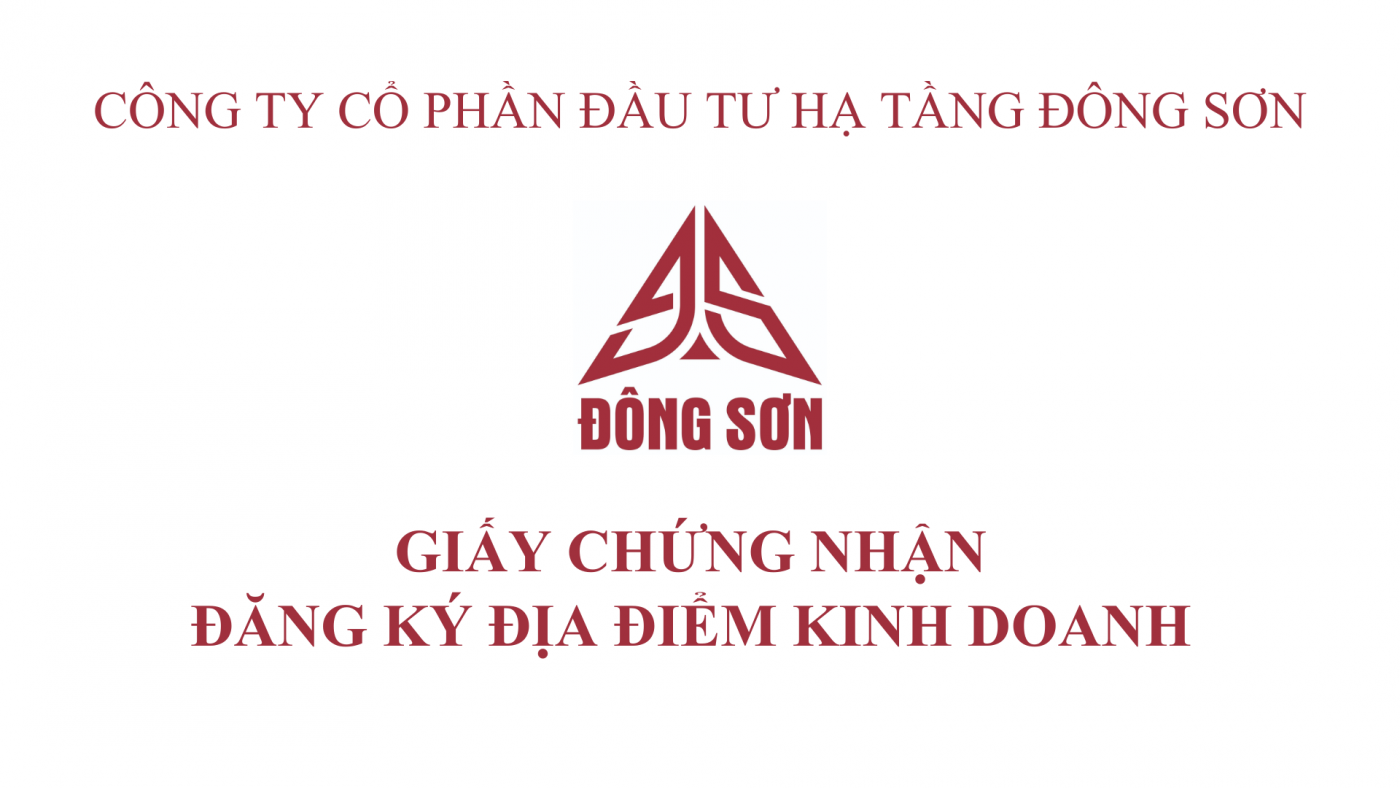 Ngày 10/02/2025, Công ty CP Đầu tư Hạ tầng Đông Sơn nhận được Giấy chứng nhận đăng ký địa điểm kinh doanh với các thông tin như sau: