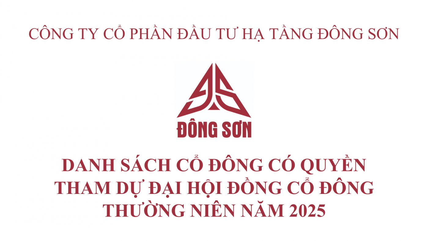 CTCP Đầu tư Hạ tầng Đông Sơn thông báo về ngày chốt danh sách cổ đông có quyền tham dự Đại hội đồng cổ đông thường niên năm 2025 theo quy định của pháp luật và Điều lệ Công ty.