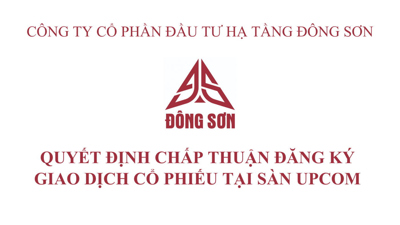 CTCP ĐẦU TƯ HẠ TẦNG ĐÔNG SƠN THÔNG BÁO QUYẾT ĐỊNH CHẤP THUẬN ĐĂNG KÝ GIAO DỊCH CỔ PHIẾU TẠI SÀN UPCOM