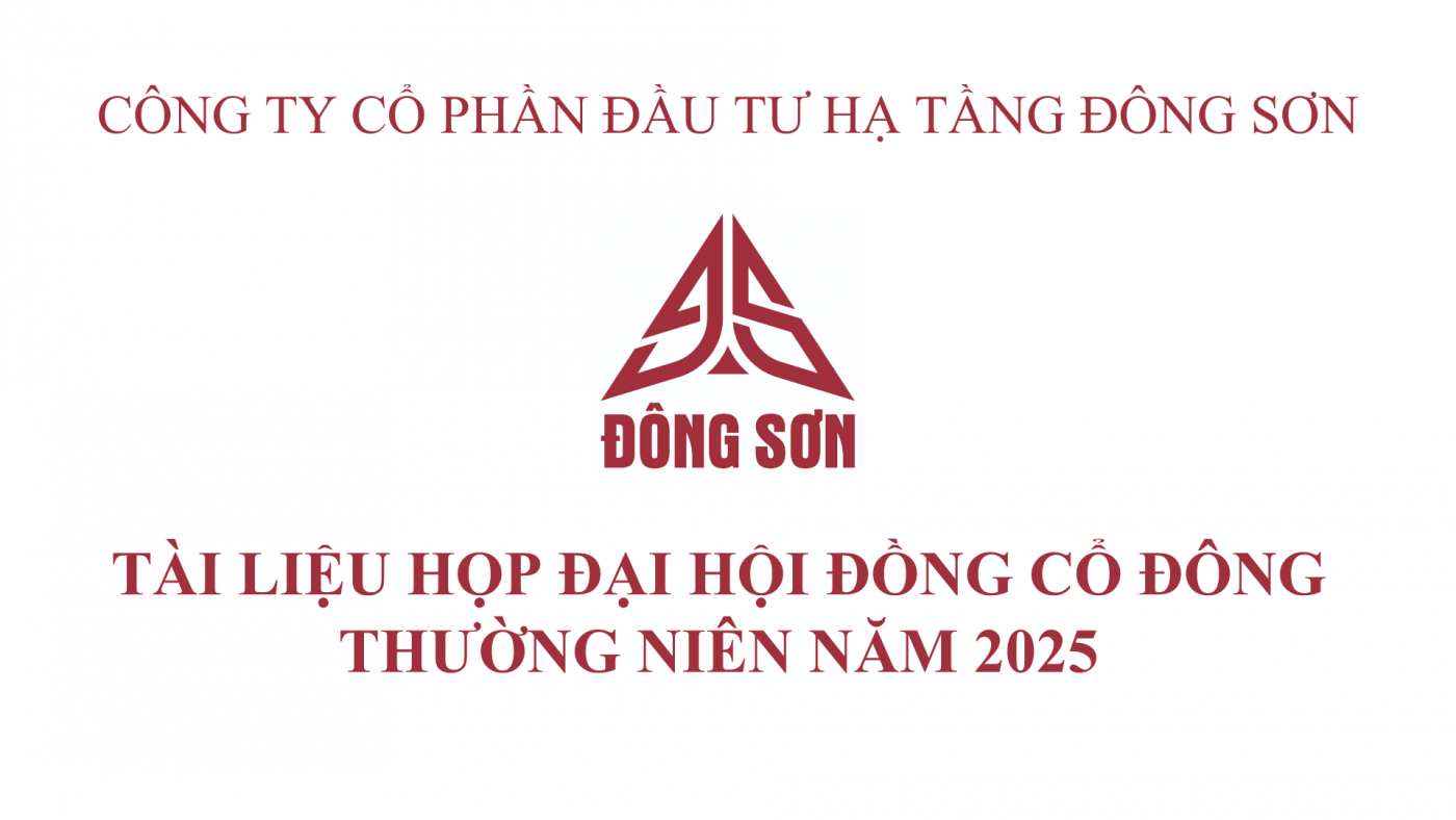 CTCP Đầu tư Hạ tầng Đông Sơn công bố bộ Tài liệu họp Đại hội đồng cổ đông thường niên năm 2025 phục vụ cổ đông nghiên cứu và tham dự Đại hội.